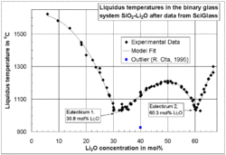 The liquidus temperature, TL or Tliq specifies the temperature above which a material is completely liquid,[1] and the maximum temperature at which crystals can co-exist with the melt in thermodynamic equilibrium. It is mostly used for impure substances (mixtures) such as glasses, alloys and rocks.