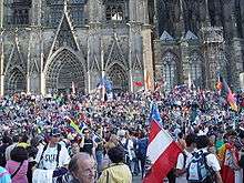 The 20th World Youth Day (German: XX. Weltjugendtag Köln) was a Catholic youth festival that started on August 16 and continued until August 21, 2005 in Cologne, Germany. It was the first World Youth Day and foreign trip of Pope Benedict XVI, who joined the festival on August 18. This meeting was decided by the previous pope, John Paul II, during the Toronto World Youth Day of 2002. The theme was "We have come to worship Him" (from Matthew 2:2).
